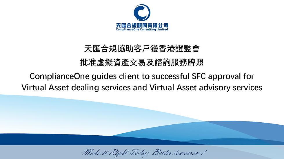 天匯合規協助客戶獲香港證監會批准虛擬資產交易及諮詢服務牌照